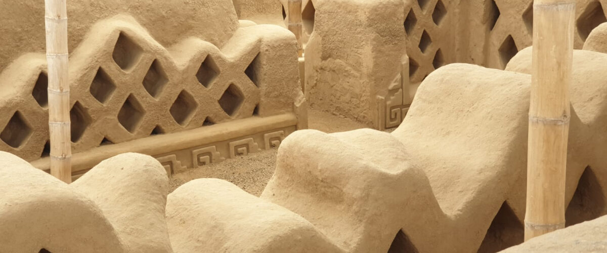 The Tschudi complex consists of 3 plazas, increasingly less exquisitely decorated as you move closer and closer to the residential areas. There was less need to show off to chieftains bringing tribute in these areas as they would not be visited. Other significant parts of the complex are the administration and taxation areas. In this part of the city there are many booths to which representatives from specific parts of the kingdom would bring their tributes to be accounted for. In this area, filled with people surrounded by baking mud walls, the Chimú made ventilation a priority. Here the walls were designed with holes in the form of fishing nets. All these areas are connected by corridors with towering decorated walls leading, eventually, towards the area of the ruling elite and the king himself. Here you will also find one of the city’s water supplies, a deep pool dug down below the groundwater level.